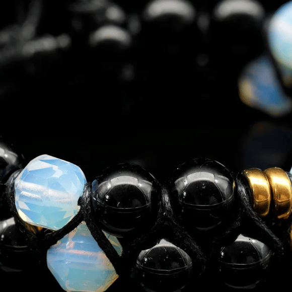 Energy Of Love Bracelet Natural Opal & Black Onyx Beaded Macrame Birthstone Men's Bracelet Women's Bracelet Father's Day Gift. ALL THE PRODUCTS AT ELISAJEWELRYART ARE HANDMADE AND MADE WITH NATURAL BEADS.