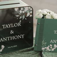 This wedding card box is a unique and beautiful way to collect cards and gifts that your guests are going to bring to your wedding. The box will be personalized with your family name.